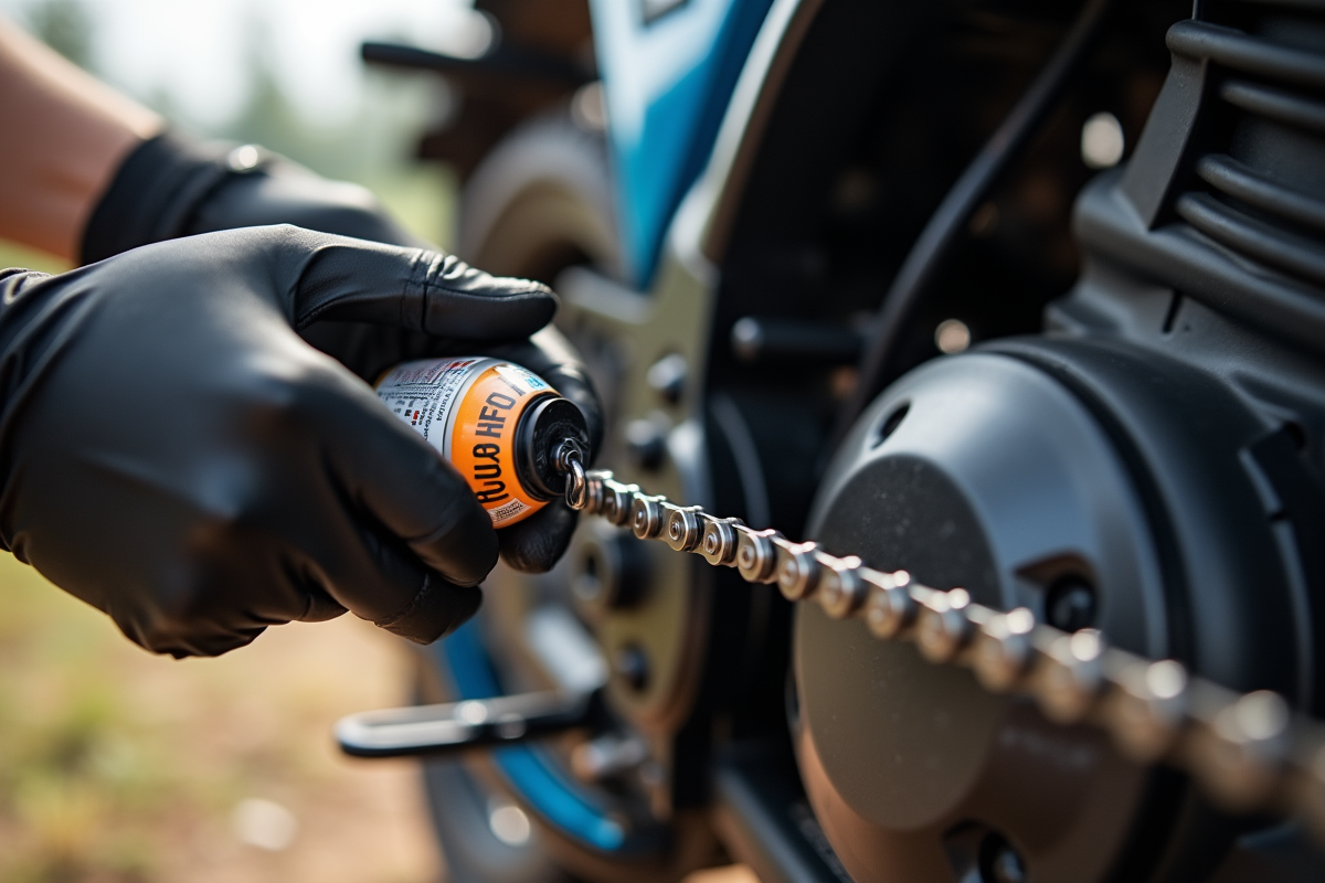 Quand l’hiver s’installe, la chaîne subit une double peine : humidité et sel accélèrent la corrosion. Adaptez alors votre routine avec un kit d’entretien hivernal combinant nettoyant, lubrifiant résistant à l’eau et brosse adaptée. Ces produits spécifiques assurent une protection constante, même par temps pluvieux ou sur routes boueuses.